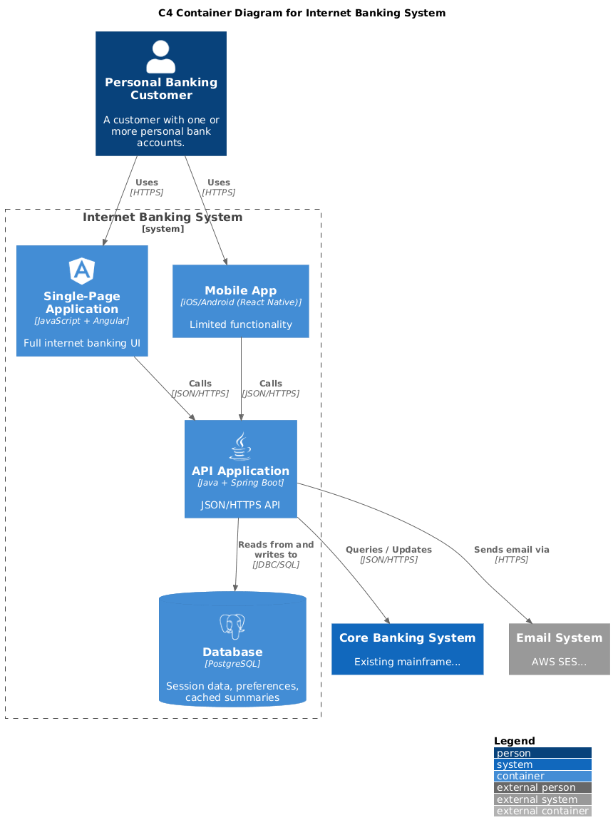 title C4 Container Diagram for Internet Banking System