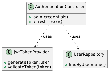 • AuthenticationController uses JwtTokenProvider and UserRepository.