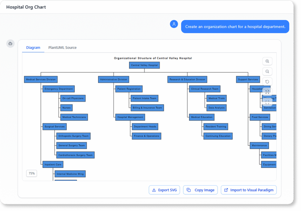 - Organization Chart: A Guide to AI-Powered Team Structure Visualization: Documentation explaining how to use Visual Paradigm’s AI to transform team descriptions into visual hierarchies.