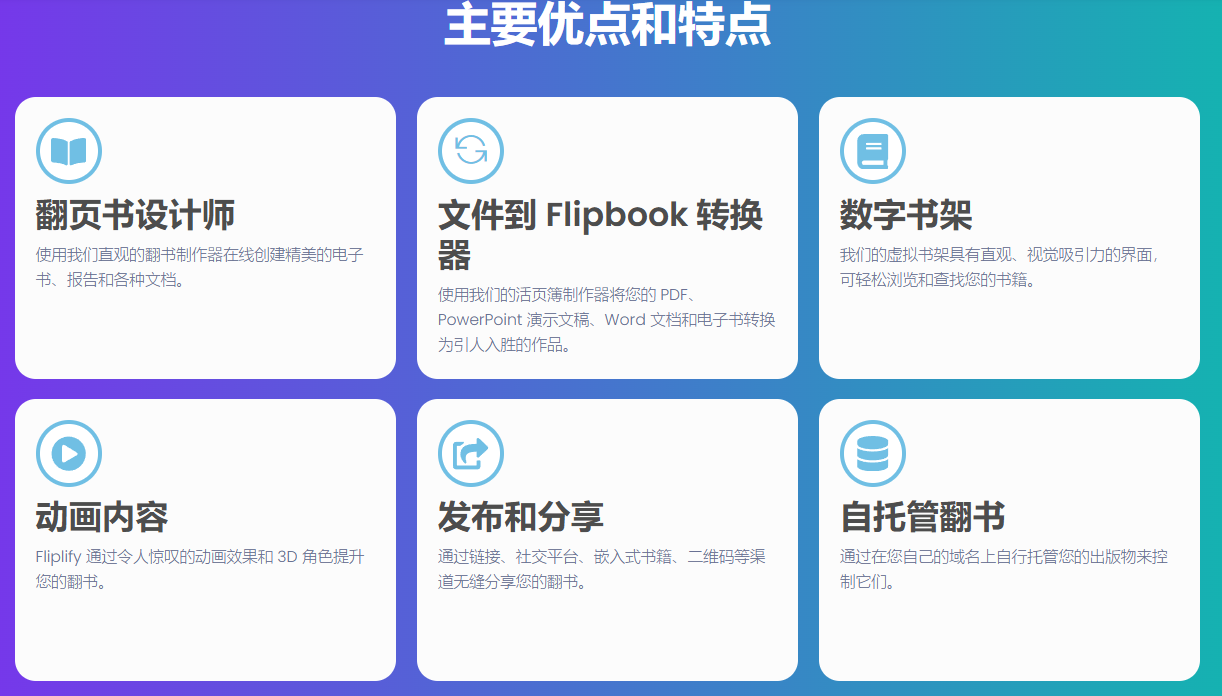 • 无缝发布和分享:用户可以通过链接、社交平台、嵌入书籍、二维码等多种渠道轻松分享他们的翻页书。