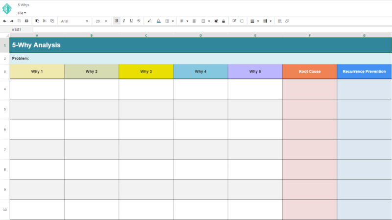 Creating 5 Whys Analysis Using Online Spreadsheet