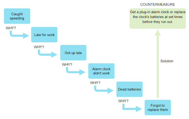 For every effect there is a cause. The “5 Whys” is a technique originally used by the Toyota Motor Corporation to explore cause-and-effect relationships. It is an iterative interrogative technique used to explore the cause-and-effect relationships underlying a particular problem.