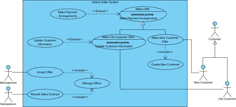 A use case diagram contains multiple model elements, such as systems, participants, and use cases, and shows various relationships between these elements, such as generalization, association, and dependency.