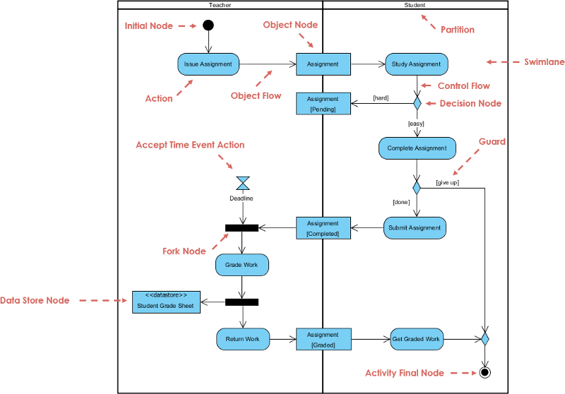 This article focuses on the concept of UML activity diagram. UML activity diagram is another common tool used by UML to model the dynamic behavior of the system. It describes the sequence of activities and shows the flow of control from one activity to another. UML activity diagram is essentially a flow chart.