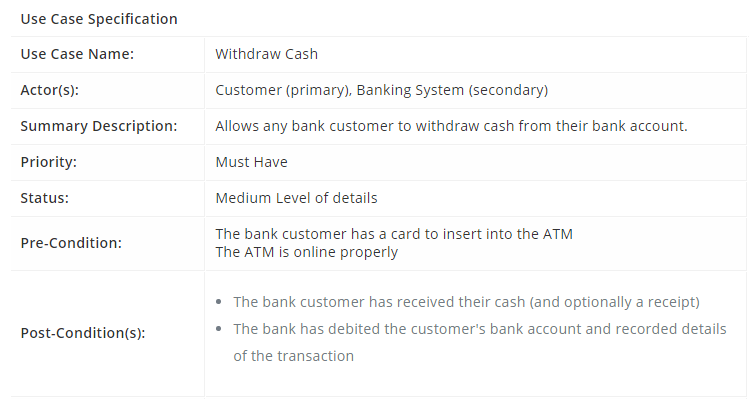 Use Case Template — ATM withdraw case example