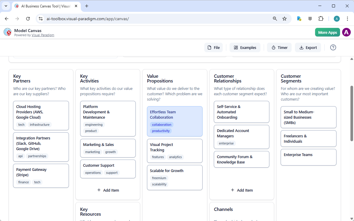 (Screenshot of Visual Paradigm’s AI Powered Model Canvas tool)