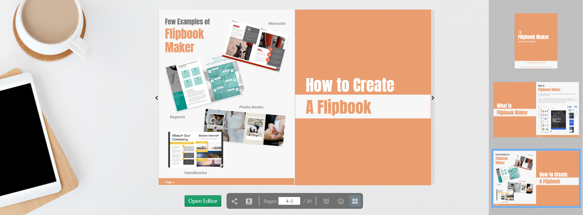 Design, publish and share your flipbook online. Try it out and create beautifully animated flipbooks with our advanced flipbook maker.