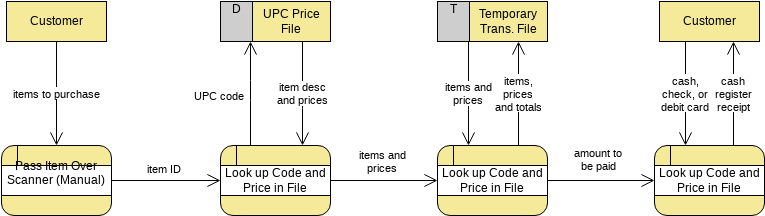 - In addition, the physical DFD mentions manual processes such as scanning, explains that a temporary file is used to keep a subtotal of items