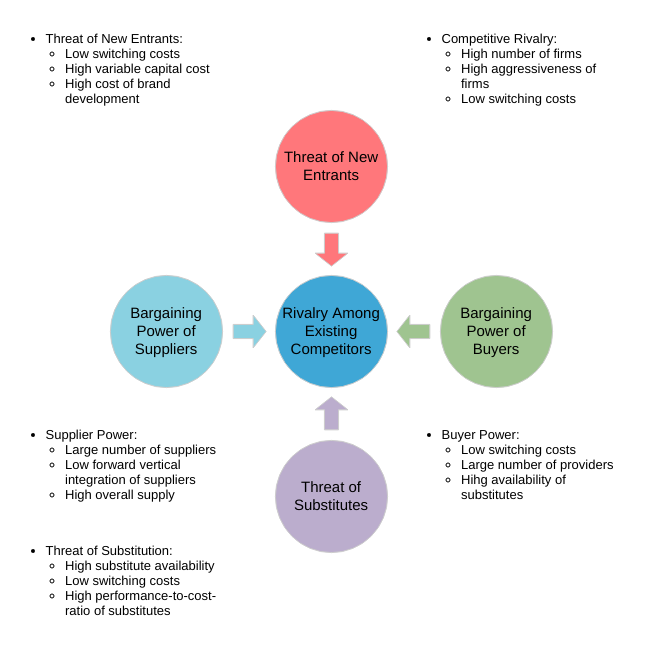 - After completing the above actions, then analyze the recent and possible future changes of each force, and try to predict how these changes will ferment in the industry.
