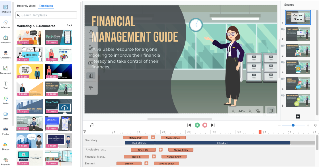 Visual Paradigm Animated Explainer offers a wealth of animation options that breathe life into your videos. Not only can you animate objects, but you can also leverage a variety of animations specifically designed for characters. From subtle movements to expressive gestures, these animations enrich the visual experience, making your videos more engaging and captivating. By incorporating dynamic animations, you keep your audience hooked, increase their interaction with your content, and amplify your marketing value.
