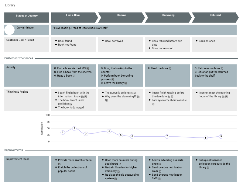 A customer journey mapping is a visualization of the process a person goes through in order to achieve a goal. It is used to understand and solve customer needs and pain points.
