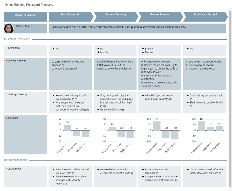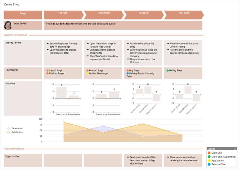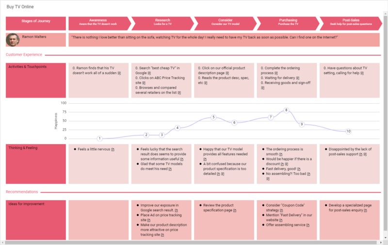It can clarify the key interaction channels between the customer and the product, and by observing and analyzing the user’s behavior, thoughts, and emotions at various stages, it can help optimize the product process and solve the pain points.