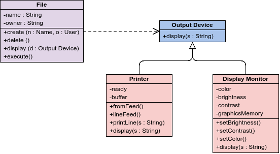• Implementation: describes how classes will implement their interfaces