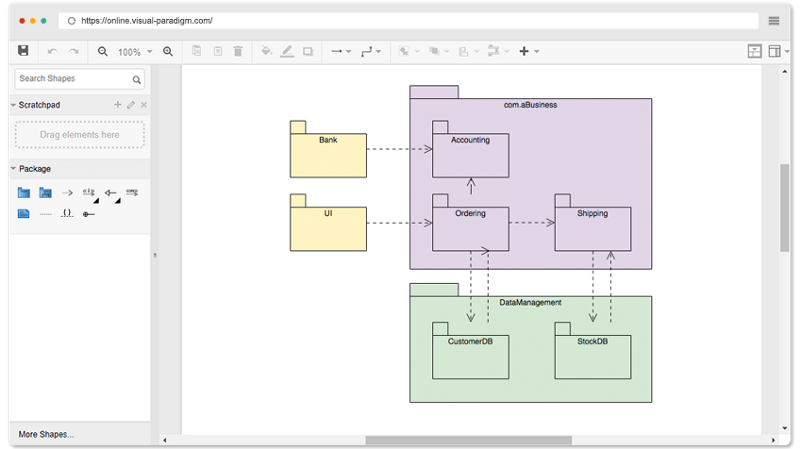 Essayez vous-même. Il suffit de parcourir les exemples de diagramme UML ci-dessous et de cliquer sur Ouvrir diagramme pour ouvrir et modifier. Vous verrez par vous-même que c’est tout ce que nous disons, ou peut-être plus.