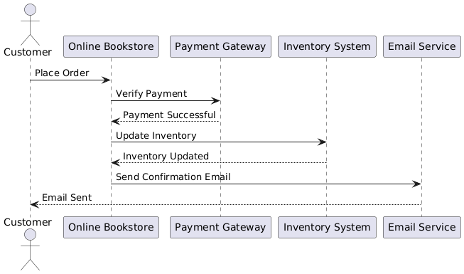 Problem Statement: A customer places an order on an online bookstore. The system needs to verify the payment, update the inventory, and send a confirmation email to the customer.