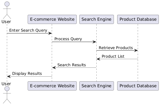 Problem Statement: A user searches for a product on an e-commerce website. The system needs to retrieve and display the search results.