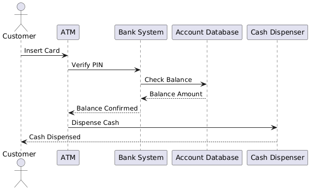 Problem Statement: A customer uses an ATM to withdraw cash. The system needs to verify the PIN, check the account balance, and dispense the cash.