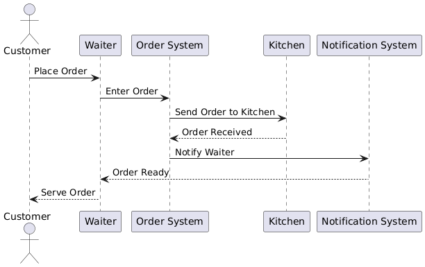 Problem Statement: A customer places an order at a restaurant. The system needs to send the order to the kitchen, update the order status, and notify the waiter when the order is ready.