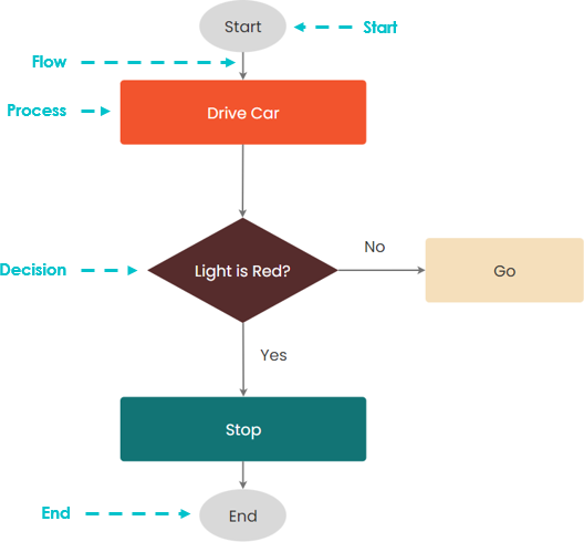 A simple flow chart showing the symbols described above can be seen below: