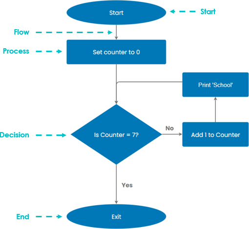 An example of a LOOP could be to display the word ‘SCHOOL’ on the screen 7 times.