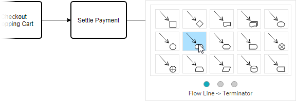 6. Create the next shape. Move your mouse pointer over the start shape. Press on the triangular handler on the right and drag it out.