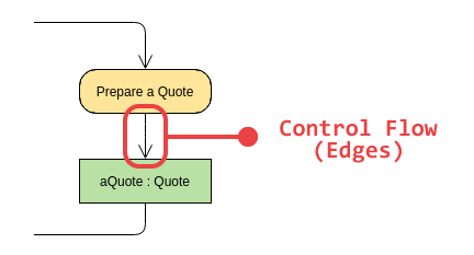 The control flow is the arrow connecting two nodes, showing the transition from one action to the next.