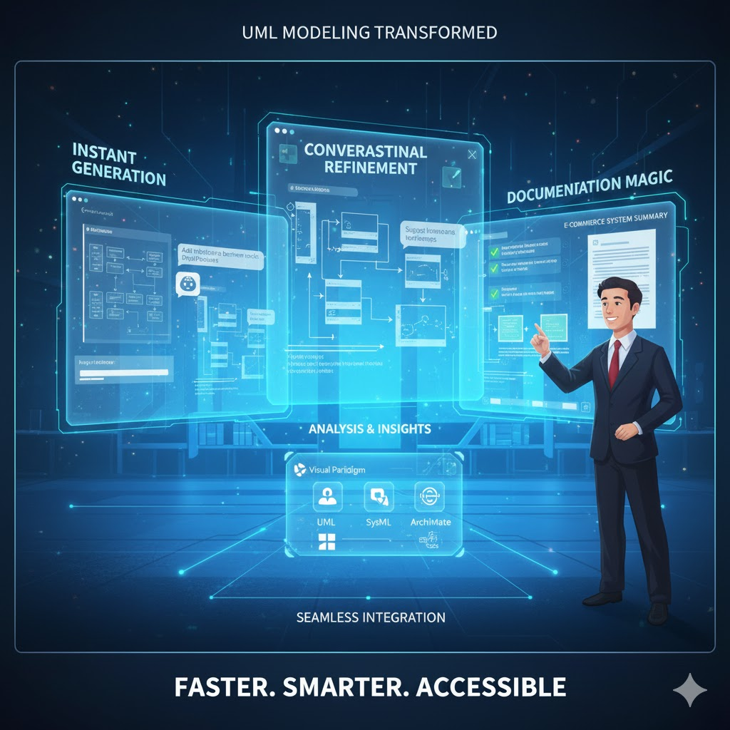 Welcome to this comprehensive UML (Unified Modeling Language) modeling tutorial. Whether you’re a software developer, system architect, or business analyst, UML is essential for visualizing, specifying, and documenting complex systems. We’ll start with the fundamentals, address why traditional UML modeling can be a slog, and then dive into how Visual Paradigm’s AI Chatbot and its suite of AI visual modeling tools are transforming the process—making it faster, smarter, and more accessible. By the end, you’ll see a real-world example, understand why 2025 is the perfect time to adopt this tech, and get a clear path to implementation.