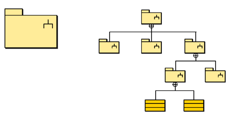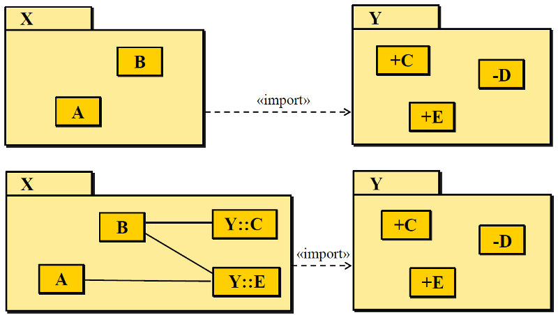 A package with a generalization to another package inherits public and protected elements that are owned or imported by the inherited package. Packages are shown in static diagrams two equivalent ways to show containment: