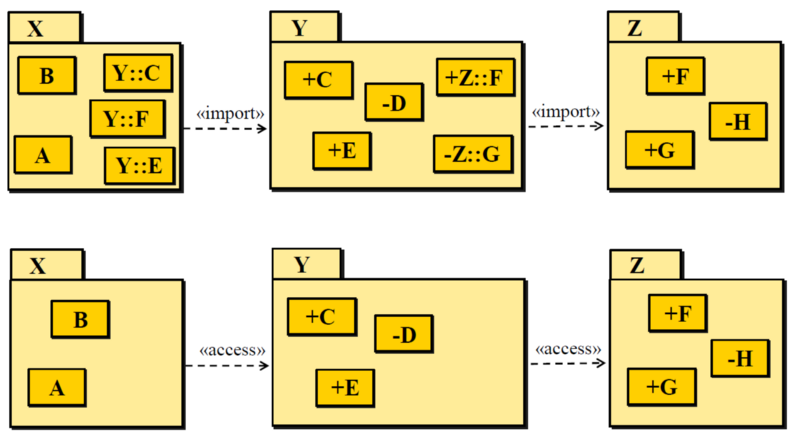 Each contained element has a visibility relative to the containing package.