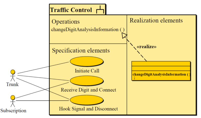A subsystem has a specification and a realization to represent the two views: