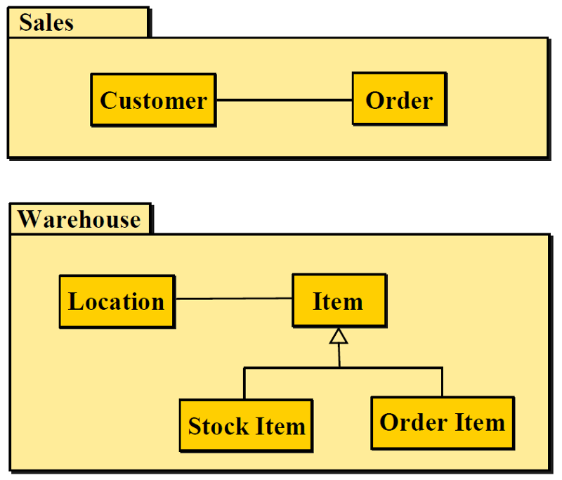 The diagram below is a business model in which the classes are grouped into packages: