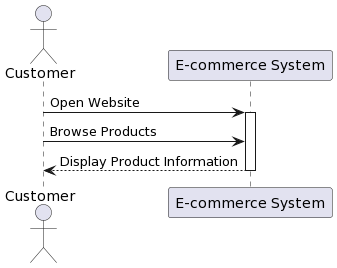 - The customer (actor) initiates the interaction by opening the e-commerce website.