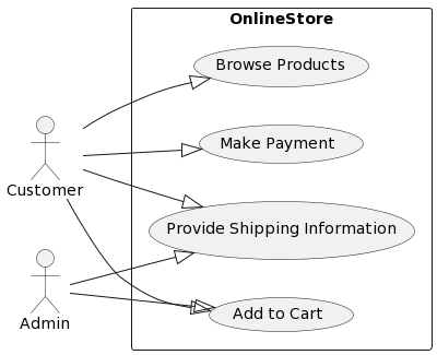 In a dynamic problem scenario, envision an individual navigating an e-commerce platform to make a purchase. The process involves browsing products, adding items to the cart, providing shipping details, and completing the transaction. To distill this narrative into a use case diagram, we identify key actors like the customer and the admin, who interact with the e-commerce system. Use cases, represented as ovals, encapsulate actions such as “Browse Products,” “Add to Cart,” “Provide Shipping Information,” and “Make Payment.” Arrows connect the actors to these use cases, illustrating the primary interactions. The diagram provides a visual blueprint of the system’s functionalities, serving as a foundational tool for subsequent stages of analysis, design, and development.