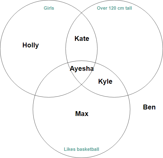 - There is also a space outside the circles where objects that do not fit any of the properties can go.