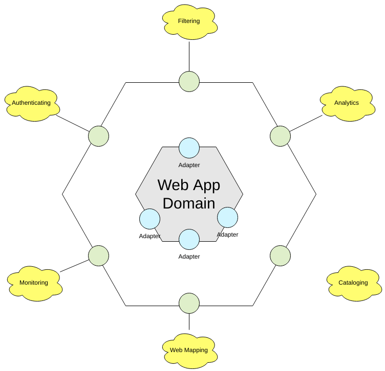Thus, the hexagonal architecture divides a system into several loosely-coupled interchangeable components by means of exposed ports and adapters and each component is connected to the others through these ports follow a given protocol depending on their purpose. This makes components exchangeable at any level and facilitates test automation.