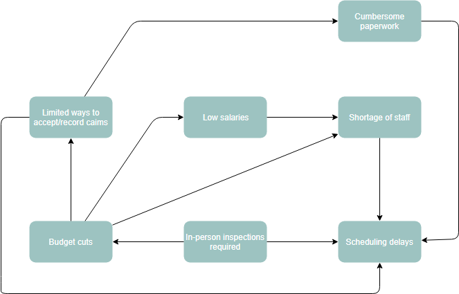 1. ‘Poor scheduling practices’ (6 outgoing arrows),