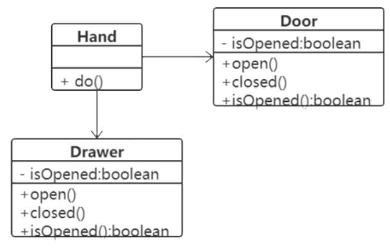 If there is a new demand, it is necessary to increase the function of opening and closing the drawer by hand. For the code, you need to add a Drawer class and modify the Hand class at the same time.