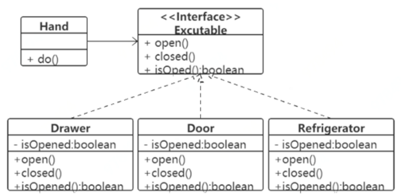 When it is necessary to increase the number of hands to open and closed the refrigerator, the refrigerator class implements this interface without modifying the original Hand class and interface.