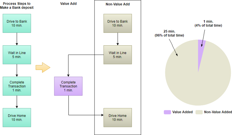 In reality, the activities that indeed create value for the customers are only a small portion of the whole work process. This is why businesses should focus on reducing wasteful activities as much as possible. By doing so, companies can identify significant opportunities to improve their overall performance.