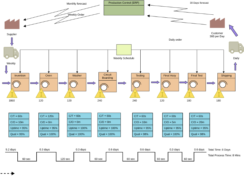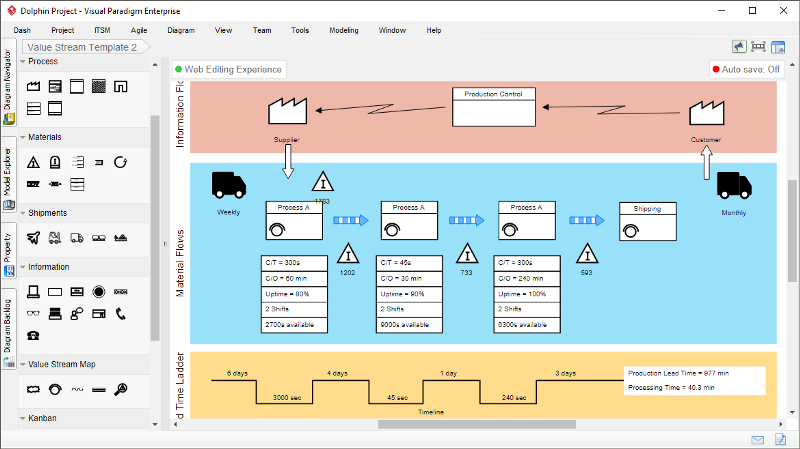 Looking for VSM software? Visual Paradigm value stream mapping software can easily and quickly create professional value stream mapping. The value stream mapping tool comes with a rich set of value stream mapping symbols. With a drag and drop VSM editor and a powerful feature set, you can easily create professional value stream maps.