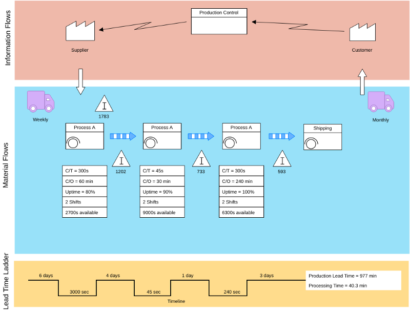 6. Step five is the LEAD TIME LADDER on the bottom of the VSM, which shows different aspects of time in the value stream.