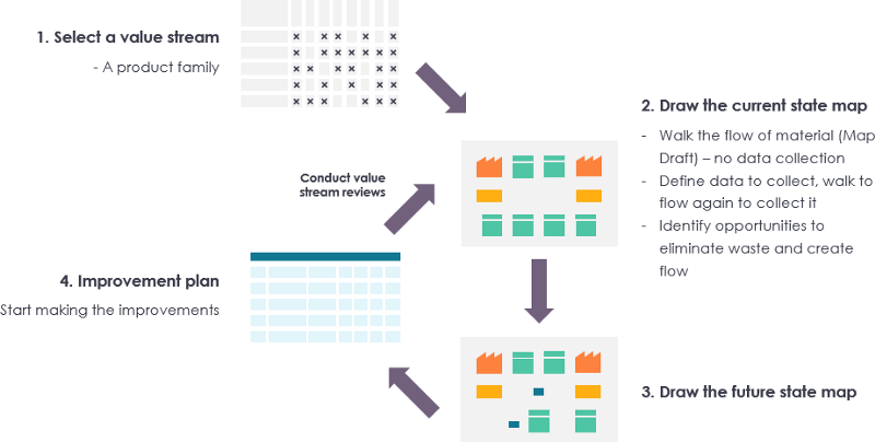 VSM makes clear the time and effort being spent on non-value adding activities, the cost of doing business, and sets the stage for reducing waste and streamlining the process. The purpose of value stream mapping is to maximize value and minimize waste in several different ways including: