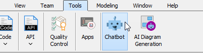 Tools > Chatbot—logical placement for a modeling assistant. -