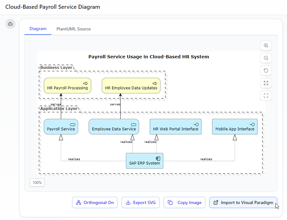 Pro Tip: Use ArchiMate-specific terms like “Business Service,” “Application Component,” or “Realization relationship” for more accurate outputs. The AI recognizes them.