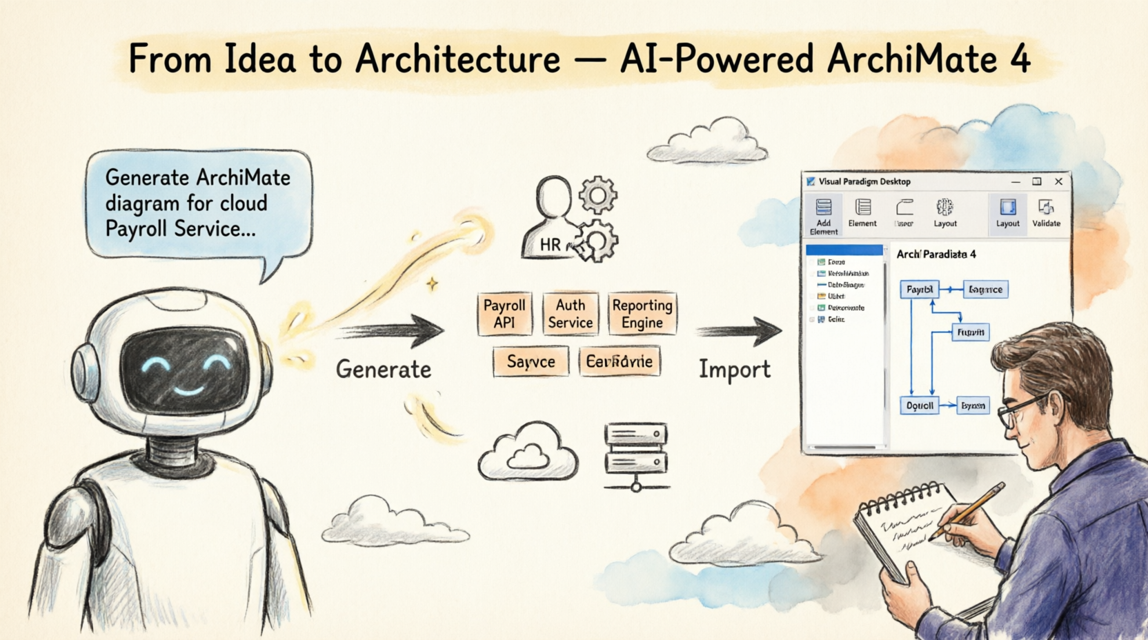 As an enterprise architecture practitioner, I’m always looking for tools that reduce the friction between ideation and execution. Visual Paradigm’s latest enhancement—AI-powered ArchiMate 4 diagram generation via Chatbot, with seamless Desktop import—promises exactly that. After putting this workflow through its paces, here’s my comprehensive, experience-driven tutorial to help you leverage this powerful new capability.