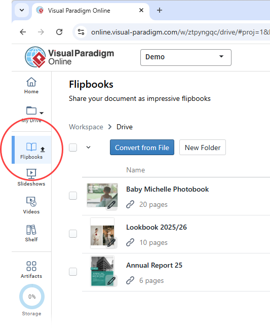 💡 Tip: In Edit mode, flipbooks appear static. Save and exit Edit mode to interact with the live flipbook.