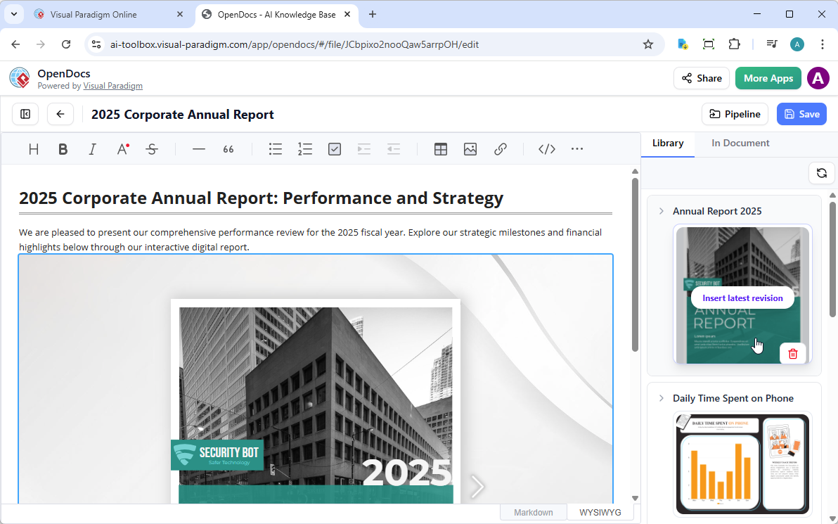 OpenDocs features a Pipeline that bridges Visual Paradigm Desktop and Online editions:
